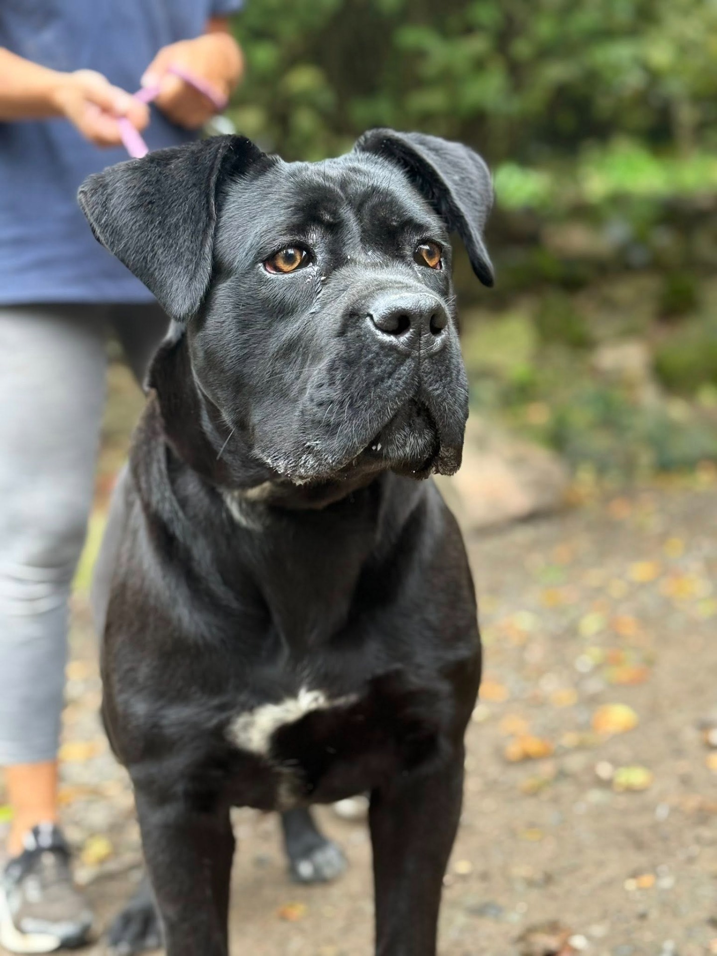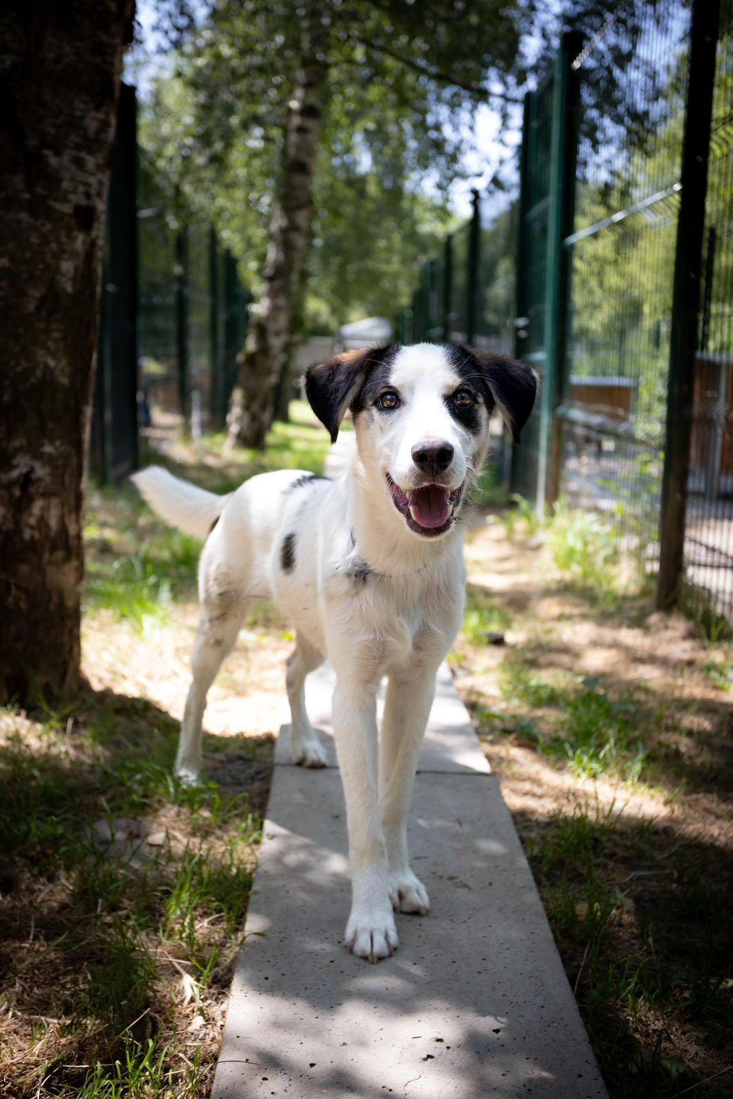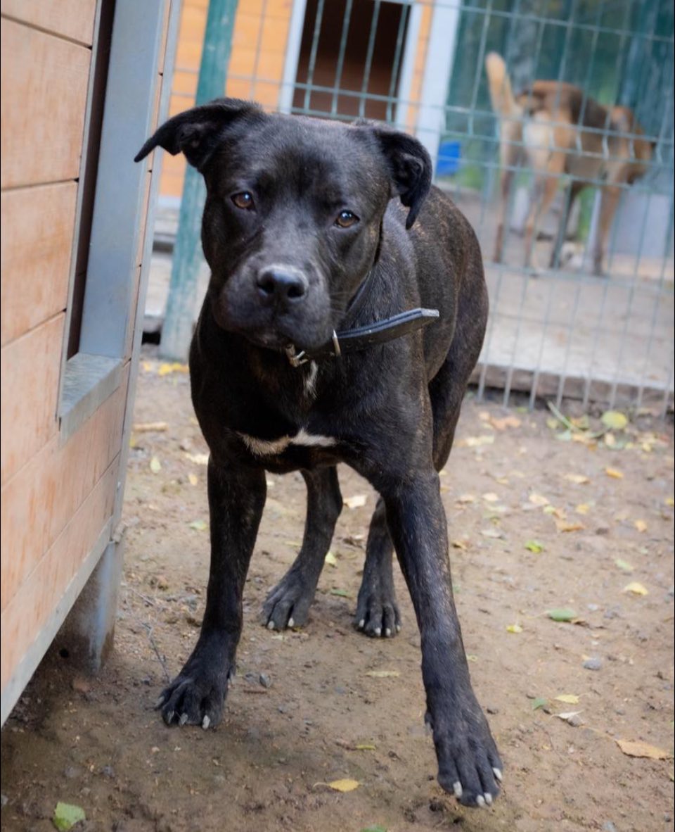 Depuis son arrivé en 2021, un gros travail d'éducation positive a été réalisé au refuge, lui permettant de développer de bons autocontrôles. Il a pour ainsi dire tout appris ici car avant son arrivée, il ne connaissait ni les sorties ni les interactions humain ou congénère.